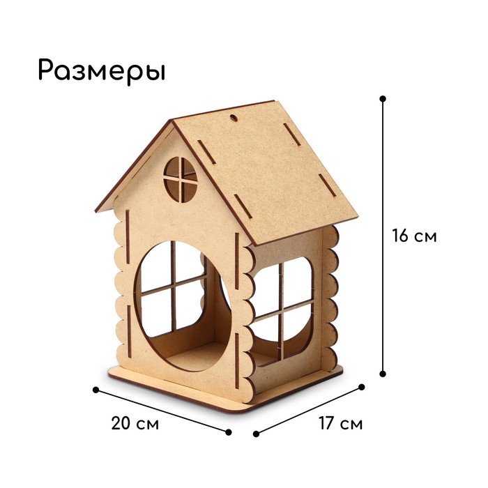 Кормушка-конструктор из ХДФ для птиц «Изба бревенчатая», 20 × 17 × 16 см, Greengo