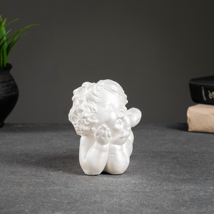 Фигура "Ангел лежит на ладошках" перламутровый, 12х16х10см