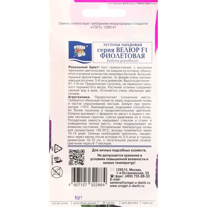 Набор Семена цветов эустомы махровой лизиантус