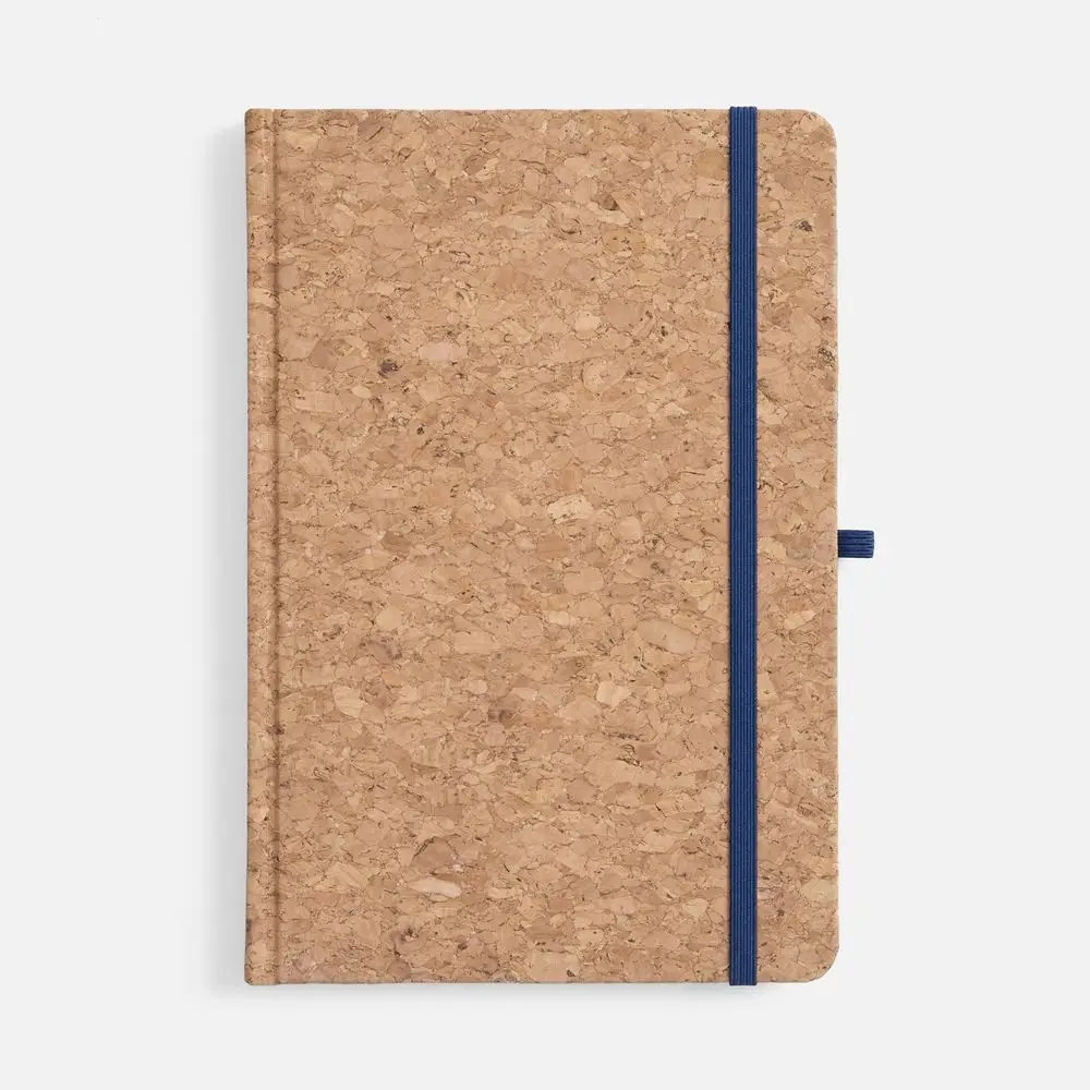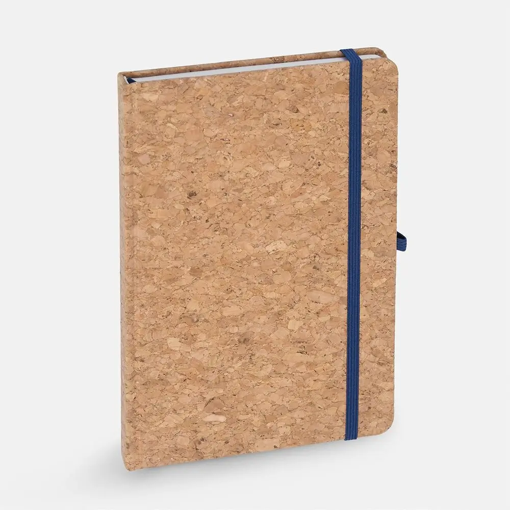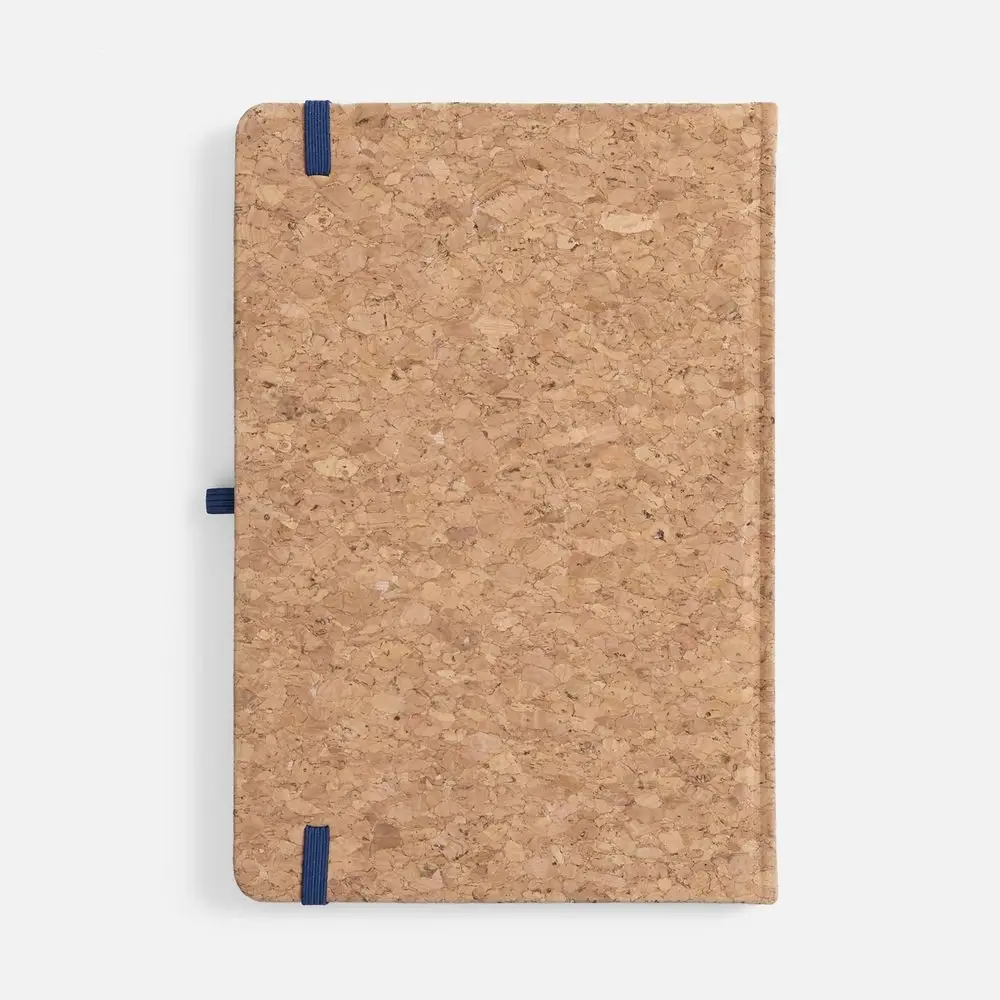 Блокнот в твердой обложке из натуральной неокрашенной пробки, дополнен цветными петлей-резинкой для ручки, ляссе и резинкой на обложку.