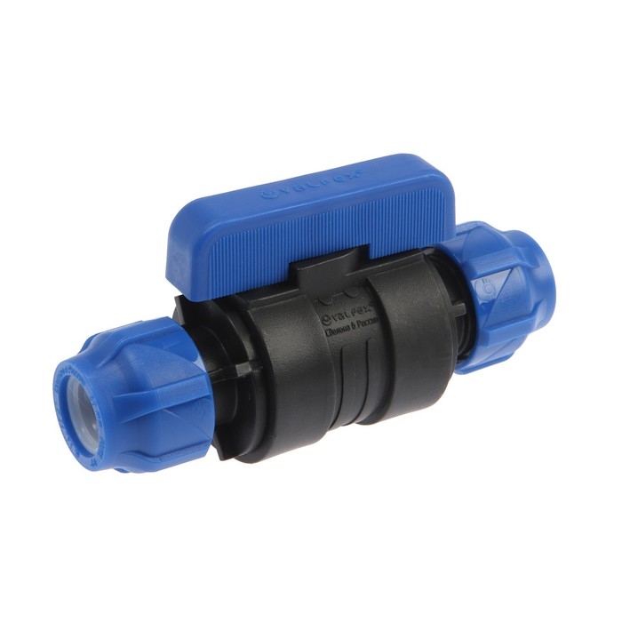 Кран шаровой ПНД Valfex, d=20 х 20 мм, цанга/цанга, разборный