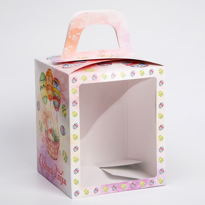 Пасхальная коробочка с окном "Счастливой Пасхи с корзинкой", 12,5 х 9,5 х 9,5 см
