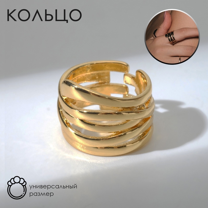 Кольцо «Звенья» широкое, цвет золото, безразмерное