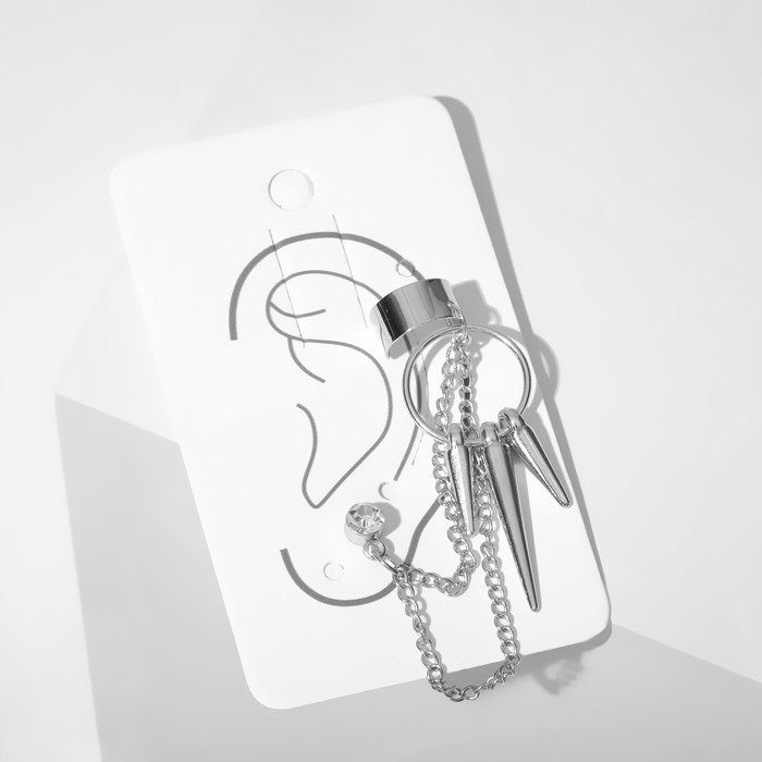 Серьга «Кафф» молодёжная, цвет белый в серебре