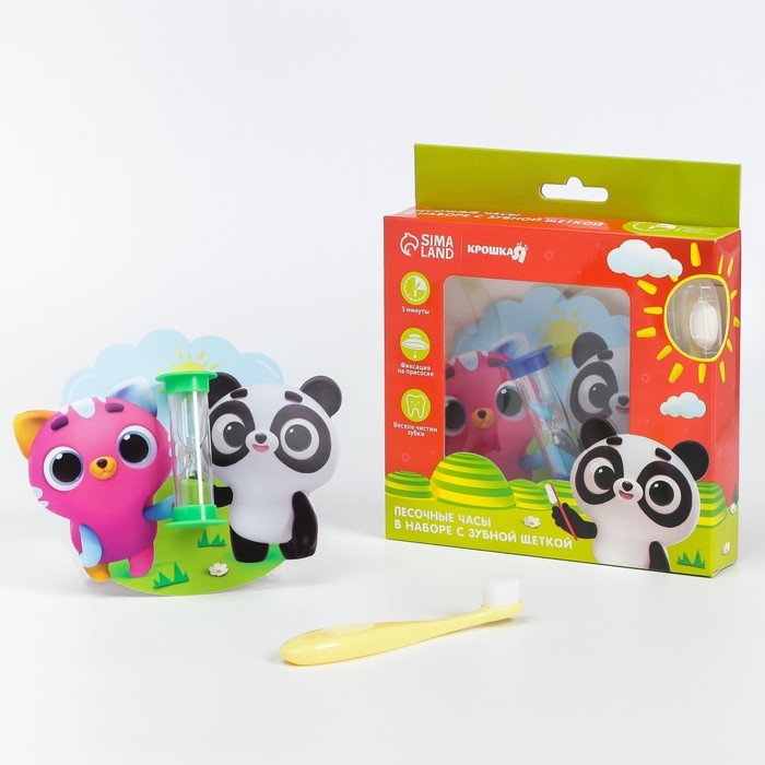 Набор зубная щётка и детские песочные часы для чистки зубов на присоске «Малыши-кругляши»