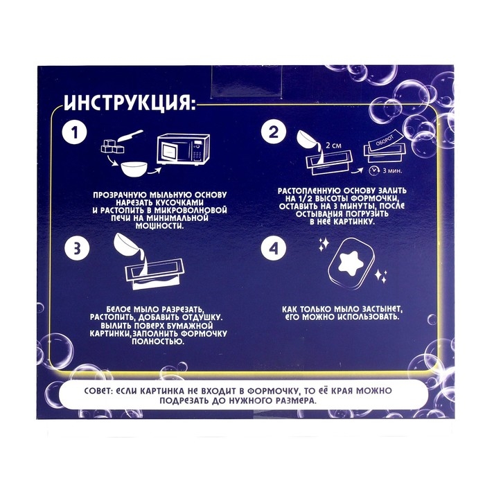С помощью этого набора вы сможете создать ароматное мыло с яркой картинкой в домашних условиях. Самое главное, что результат своих трудов можно использовать каждый день.