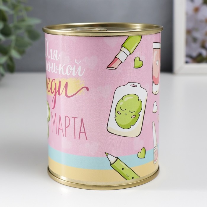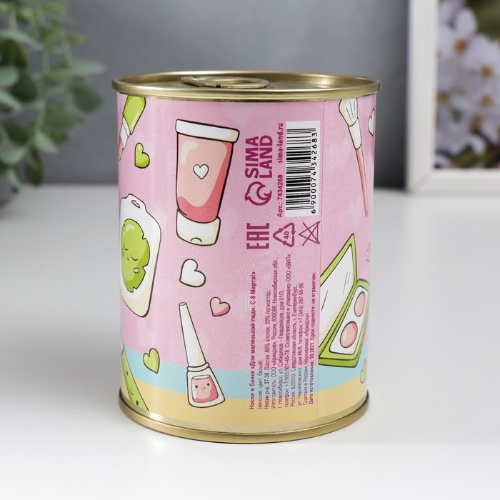 Носки в банке "Для маленькой леди, С 8 Марта!" (внутри носки женские, цвет белый)