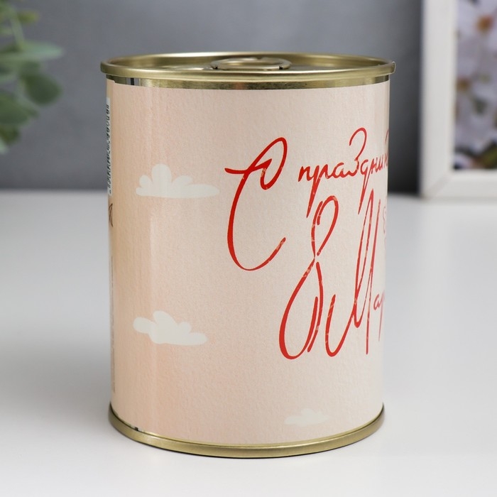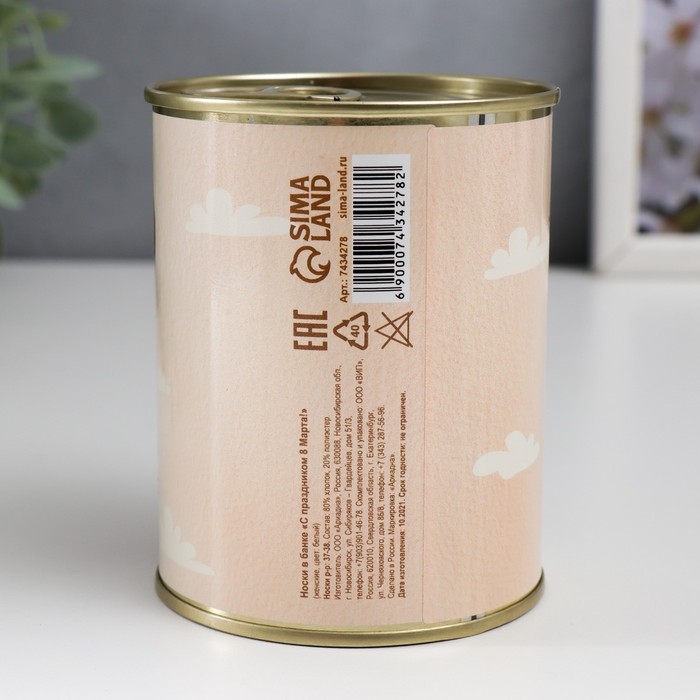 Носки в банке "С праздником, 8 Марта!" (внутри носки женские, цвет белый)
