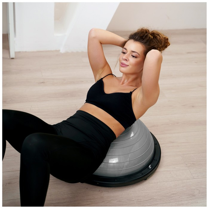 Полусфера BOSU гимнастическая ONLYTOP, с насосом, 58 х 25 см, цвет серый