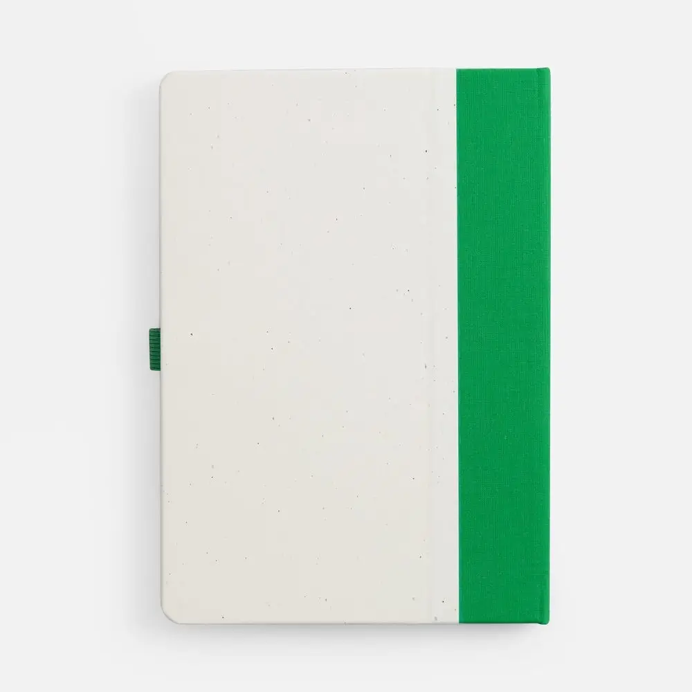 Бумага и обложка произведены из переработанных пакетов из под молока. Обложка из картона плотностью 140 г/м² .