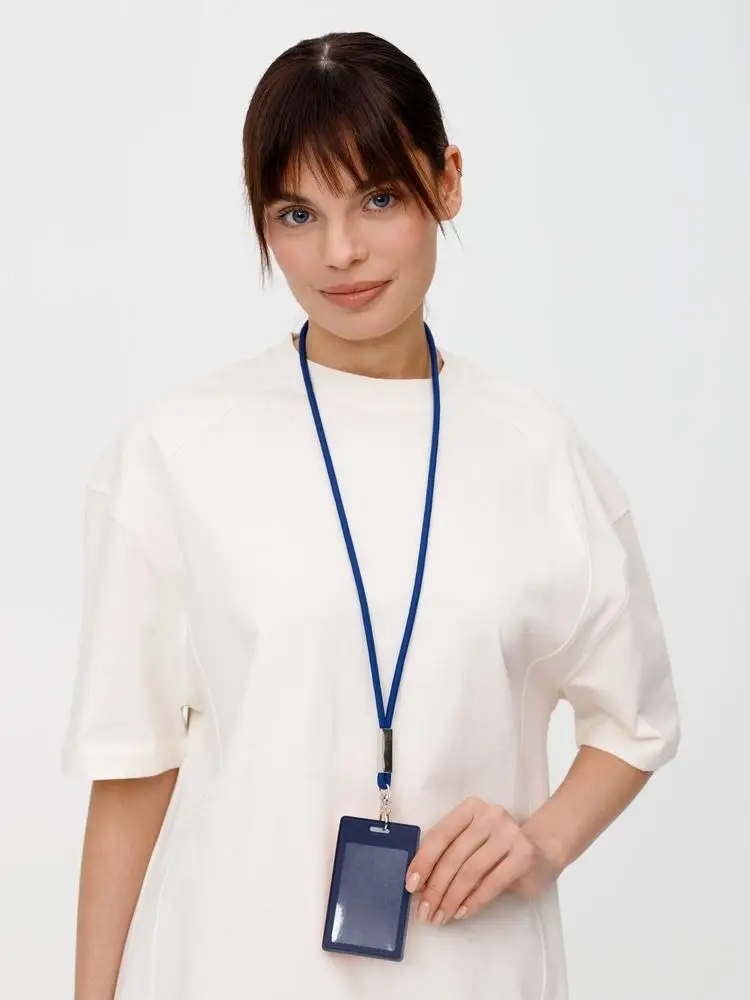 Прочный полиэстер обеспечивает долговечность использования, а оптимальная длина шнурка гарантирует комфортное ношение. Идеальный выбор для корпоративных мероприятий, выставок и деловых встреч, а также повседневного использования в офисе.