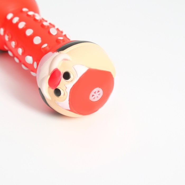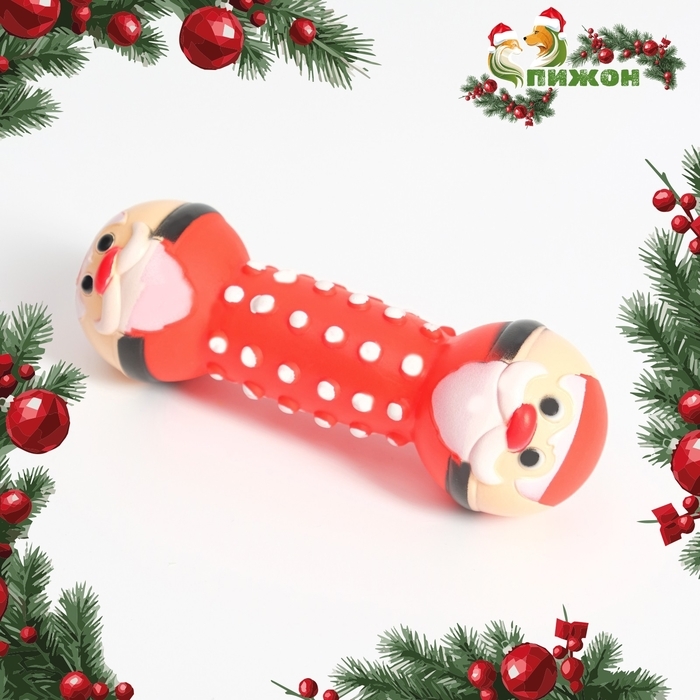 Игрушка-гантель пищащая "Дед мороз" для собак, 13 х 5 см, красная