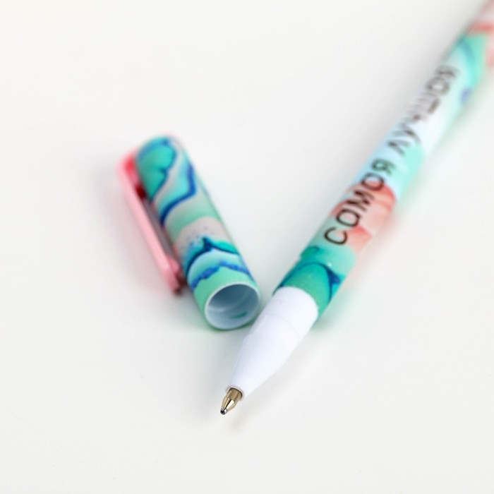 Ручка с колпачком и нанесением soft-touch «Любимому учителю», синяя паста 0.7 мм