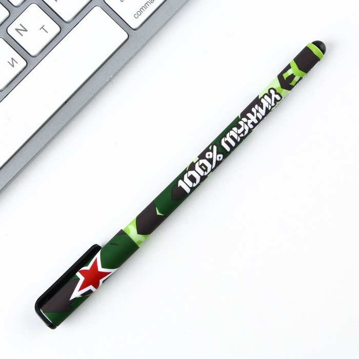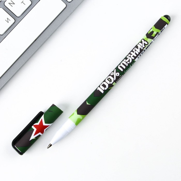 Ручка шариковая синяя паста 0.7 мм с колпачком «100% мужику» пластик софт-тач