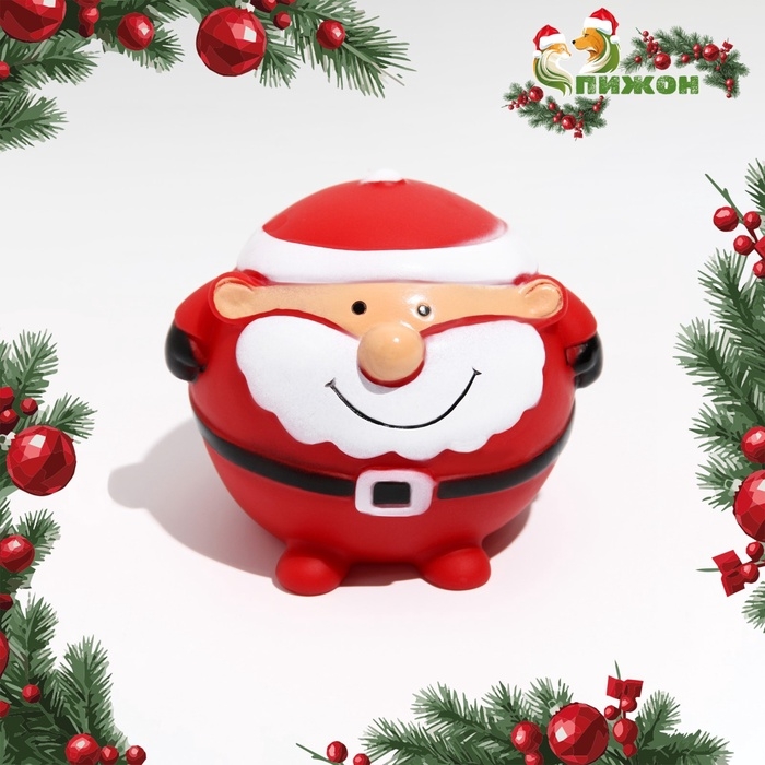 Шар пищащий для собак "Веселый Дед Мороз", виниловый, 8,5 х 8 см