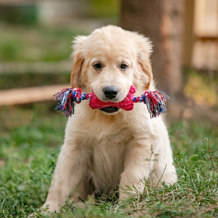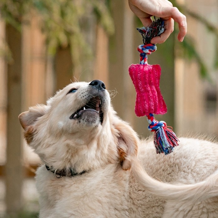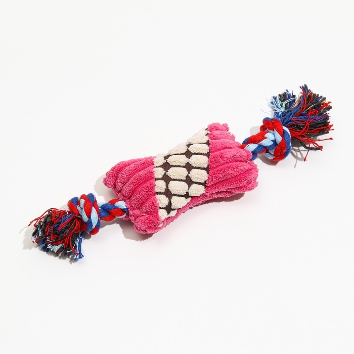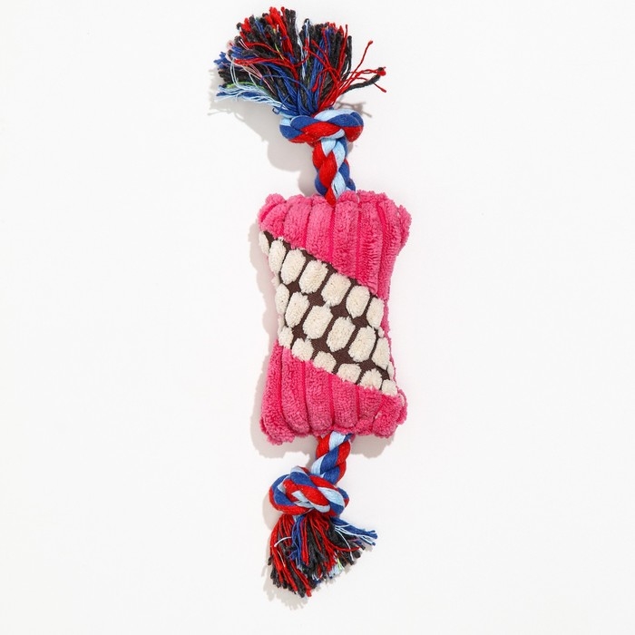 Игрушка мягкая для собак "Особая кость на канате", с пищалкой, 25 см, микс цветов