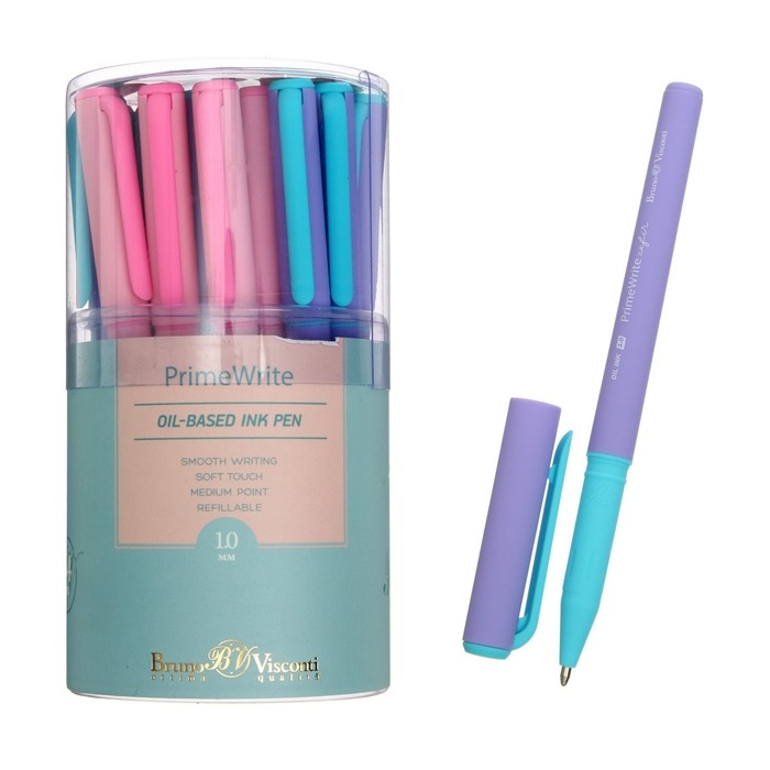 Ручка шариковая PrimeWrite. Basic. Zefir, узел 1.0 мм, синие пигментные чернила на масляной основе, корпус Soft Touch, МИКС