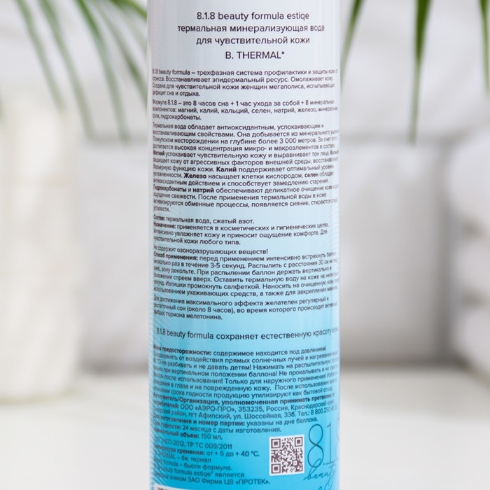 Термальная минерализующая вода для чувствительной кожи 818 beauty formula estiqe, 150 мл