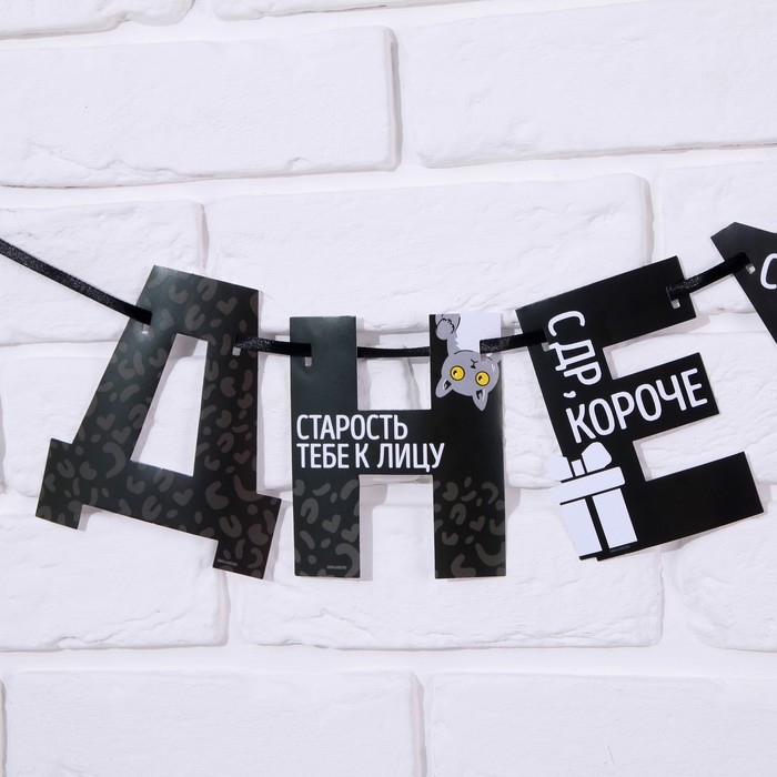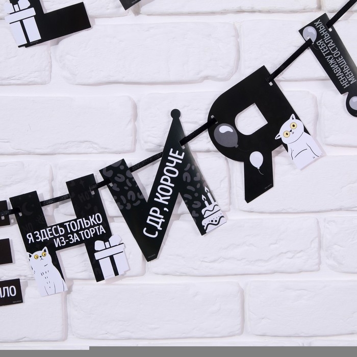 Гирлянда на люверсах с украшениями 5 шт. «С Днем рождения», черный, длина 270 см