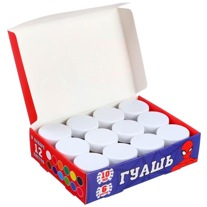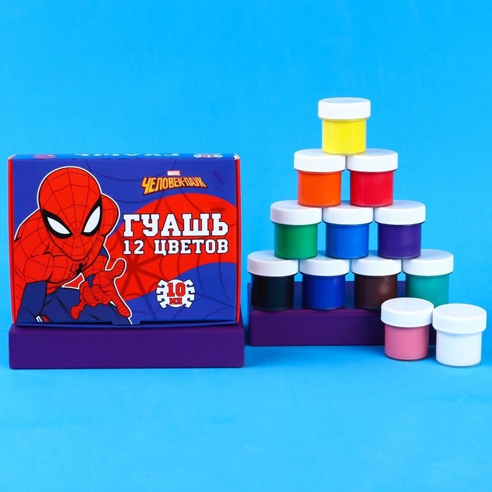 Гуашь 12 цветов по 10 мл, Человек-Паук