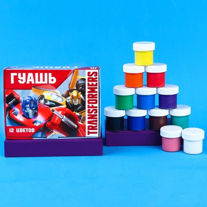 Гуашь 12 цветов по 10 мл, Трансформеры