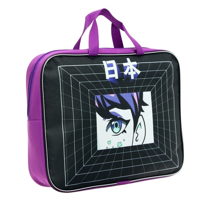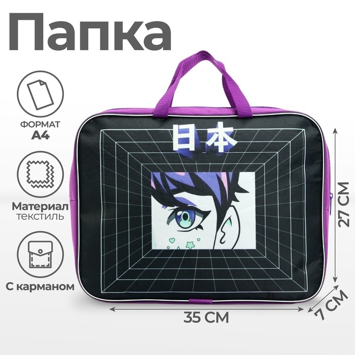 Папка с ручками А4, 330 х 260 х 75 мм, пластиковая, ручки-тесьма, Calligrata "Аниме девочка"