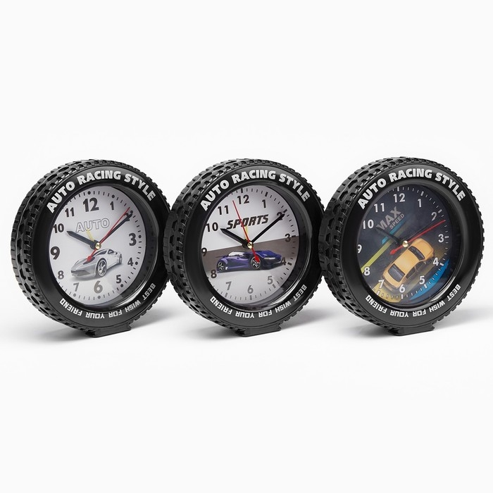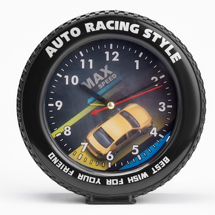 Часы - будильник настольные "Гонки" детские, дискретный ход, d-10 см, 14 х 14 см, АА