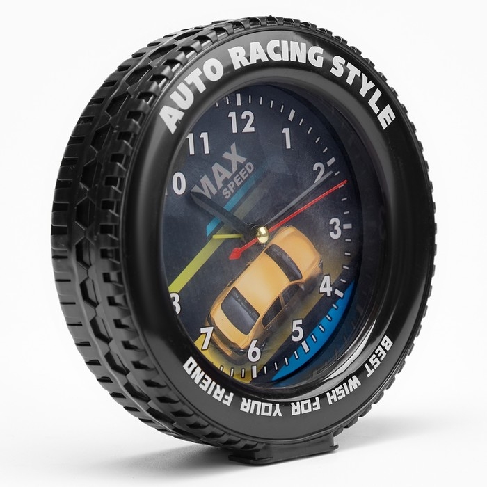 Часы с будильником представлены в ярком дизайне в форме автомобильного колеса, они отлично впишутся в ваш интерьер. Интерьерные часы станут прекрасным декором для дома и дачи, их можно поставить как на прикроватную тумбочку в спальне, детской комнате, гостиной так и на стол или на комод в зале, холле или на кухне. Будильник настольный имеет кварцевый механизм, который гарантирует высокую точность хода. Часы настольные обладают громким будильником, ребенку и вам будет комфортно просыпаться, на работу и в школу. Будильник на батарейках не требует частой замены батареек благодаря экономичному механизму.