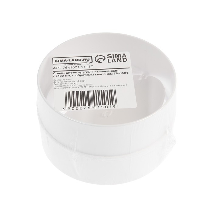 Соединитель круглых каналов ZEIN, d=100 мм, вентиляционный, с обратным клапаном
