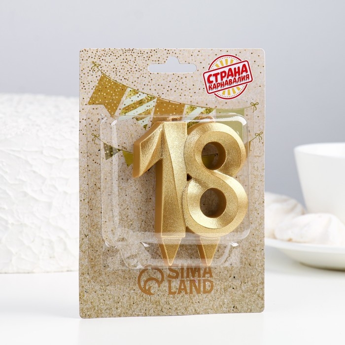 Свеча в торт "Грань", цифра 18, золотой металлик, 6,5 см