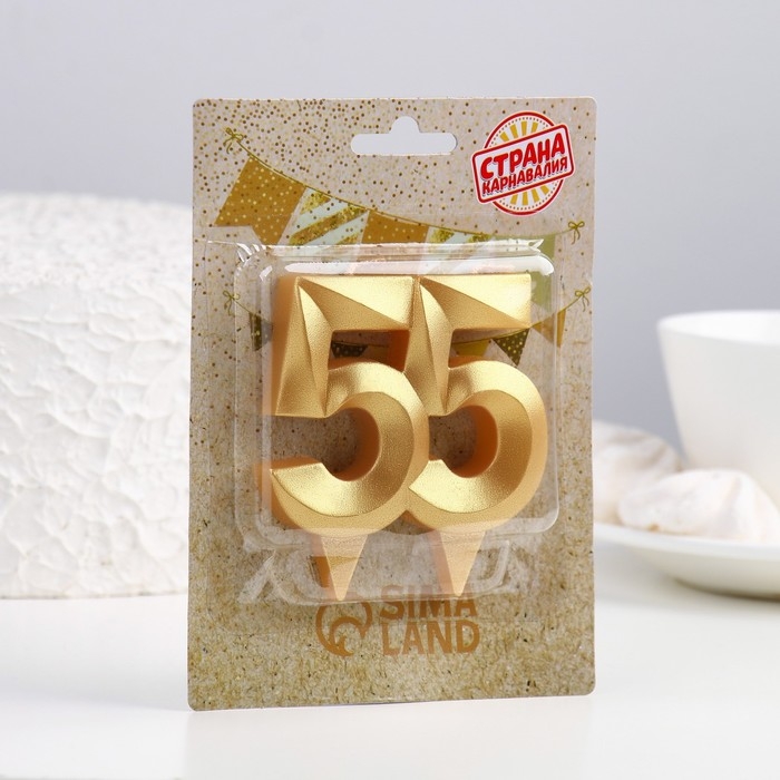 Свеча в торт юбилейная "Грань", цифра 55, золотой металлик, 6,5 см
