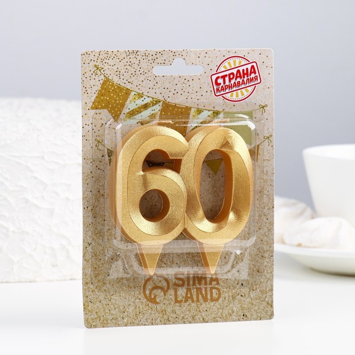 Свеча в торт юбилейная "Грань", цифра 60, золотой металлик, 6,5 см