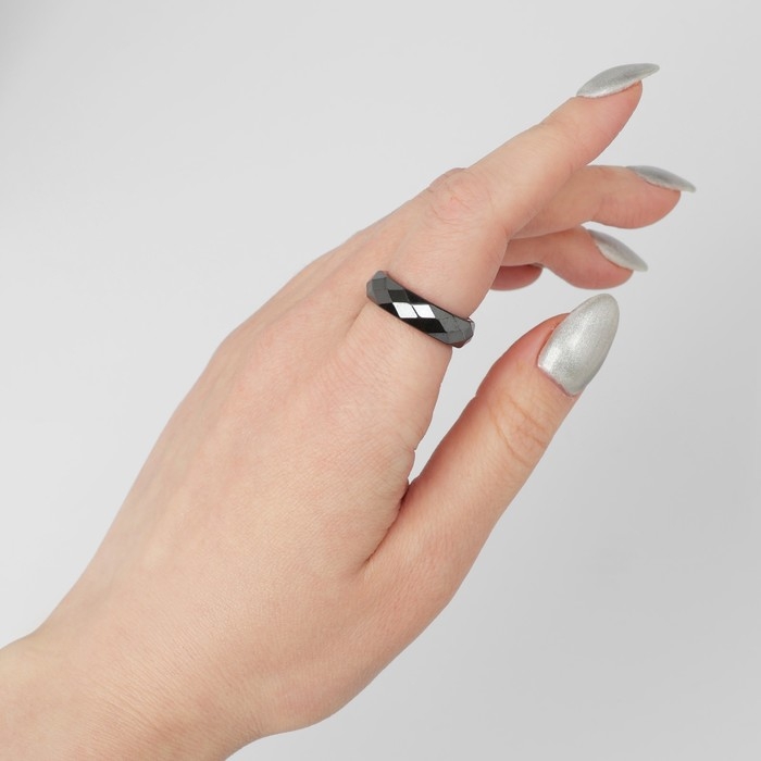 Кольцо «Ночь» под гематит, гранёное, цвет чёрный, размер 16