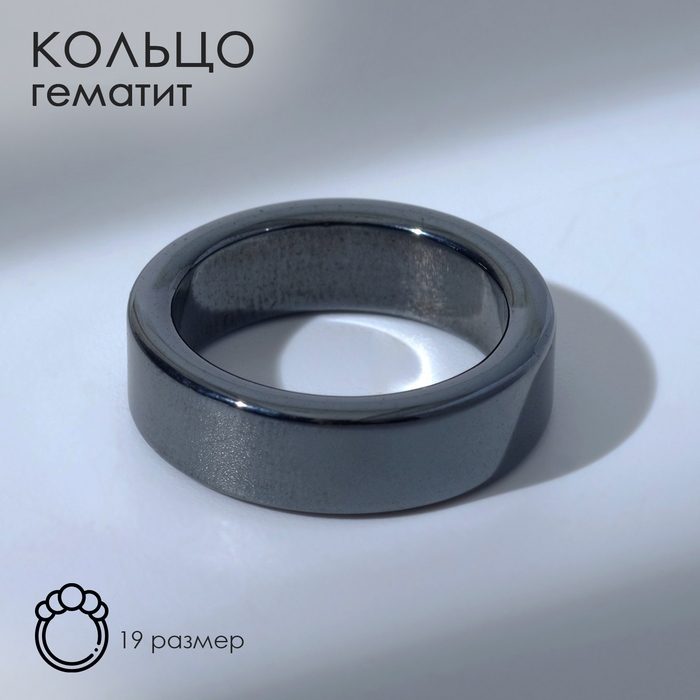 Кольцо «Ночь» под гематит, широкое, цвет чёрный, размер 19