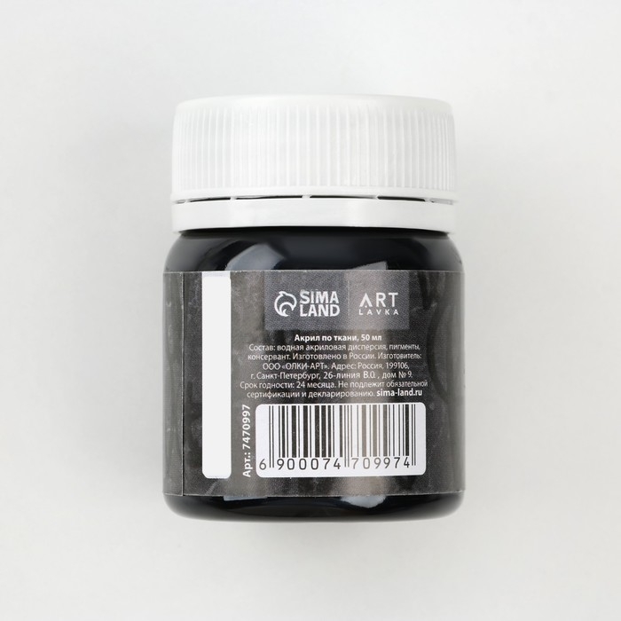 Акриловая краска по ткани ARTLAVKA, черная 50 мл