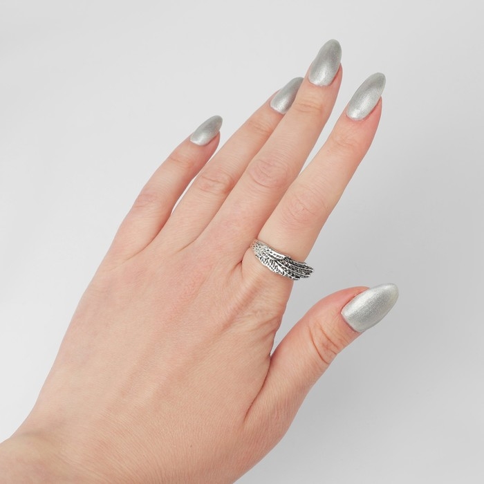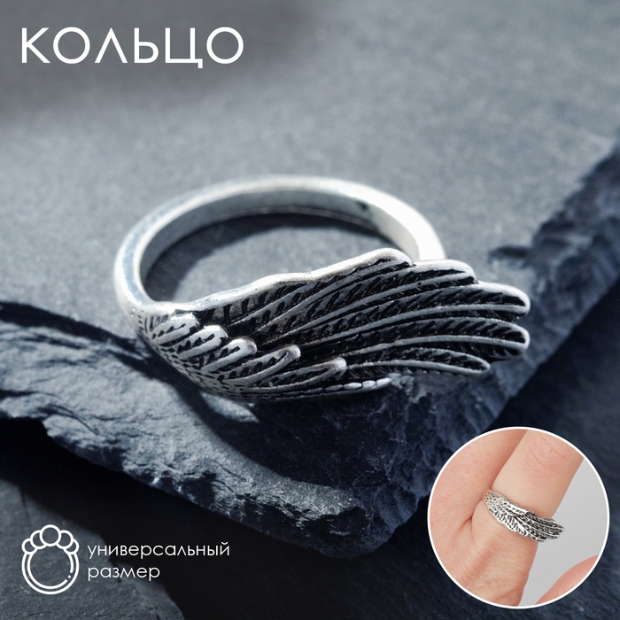 Кольцо «Перстень» крыло, цвет чернёное серебро, безразмерное