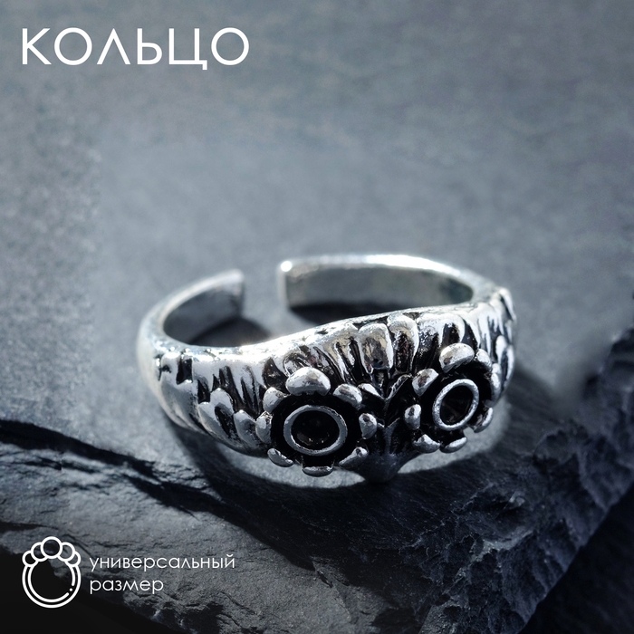 Кольцо «Перстень» сова, цвет чернёное серебро, безразмерное