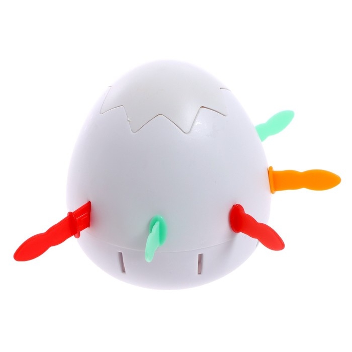 - По очереди втыкайте палочки в отверстия на яйце, пока цыплёнок не почувствует укол и не вылупится.