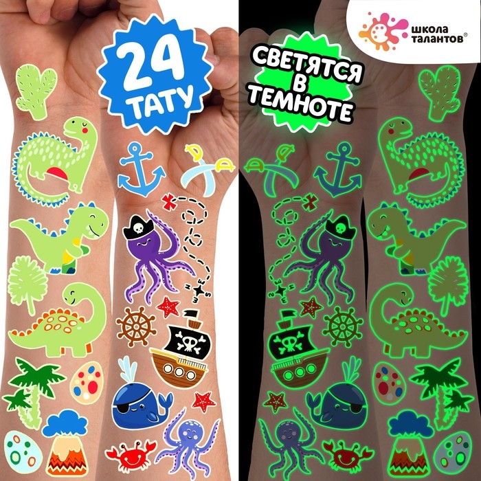 Набор «Детские татуировки», светятся в темноте, 2 листа