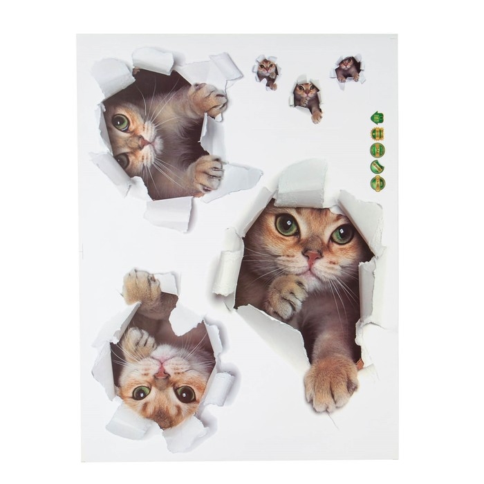 Наклейка интерьерная 3D "Три кошки" на стену, 60 х 45 см, влагостойкая, ПВХ