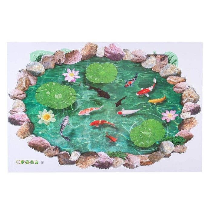 Наклейка интерьерная 3D "Пруд с рыбками" на стену, 90 х 60 см, влагостойкая, ПВХ