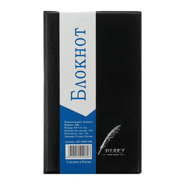 Записная книжка "Перо" А7, 70 листов в клетку, обложка ПВХ, чёрная
