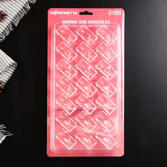 Форма для конфет и шоколада KONFINETTA «Плетёный батон», 27,5×17,5×2,5 см, 21 ячейка 3,5×1,5×1,5 см, цвет прозрачный
