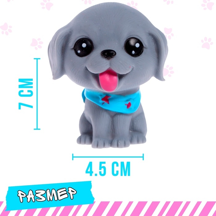 - Высота питомца — 7 см. Игрушка очень компактная, поэтому её удобно захватить с собой на прогулку, в гости и даже в путешествие!