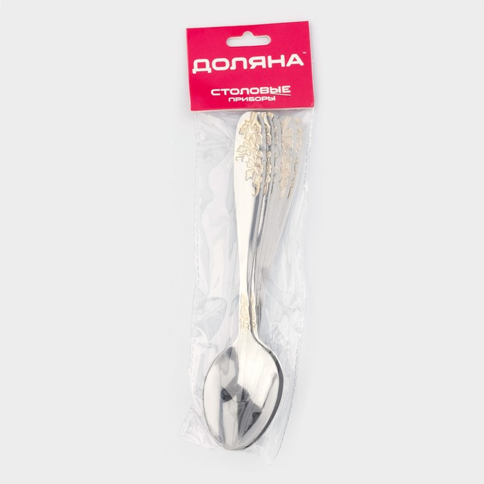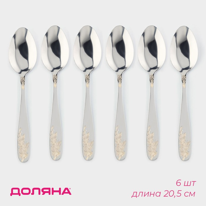 Ложки столовые из нержавеющей стали Доляна «Букет», длина 20,5 см, 6 шт, цвет серебряный