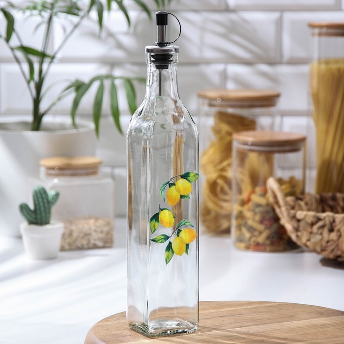 Бутылка стеклянная для соусов и масла Доляна «Лимоны», 500 мл, 6×29 см