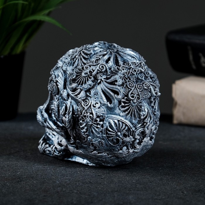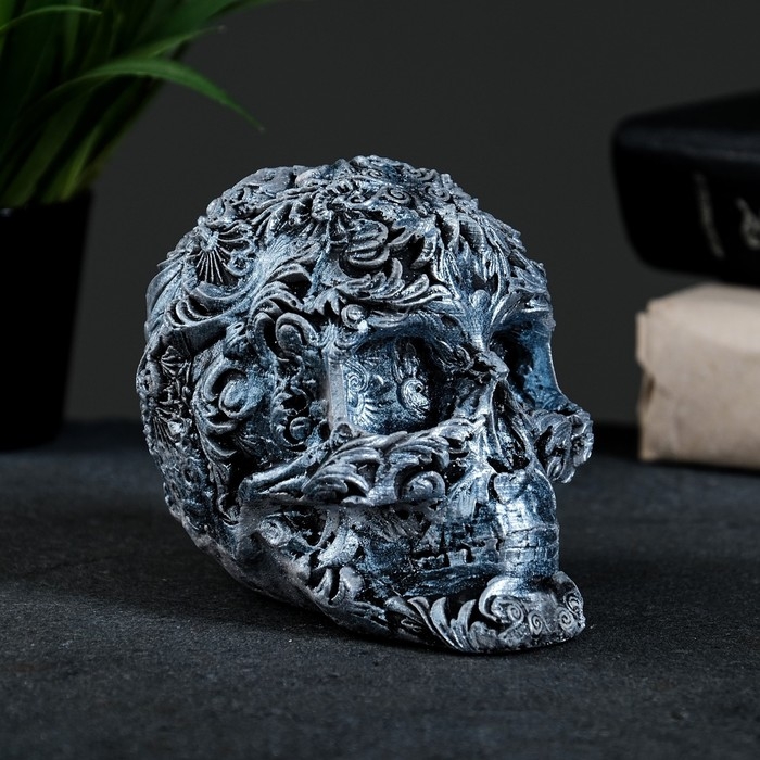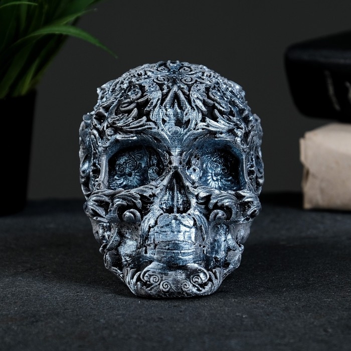 Фигура "Череп цветной" состаренное серебро, 10х12х8см