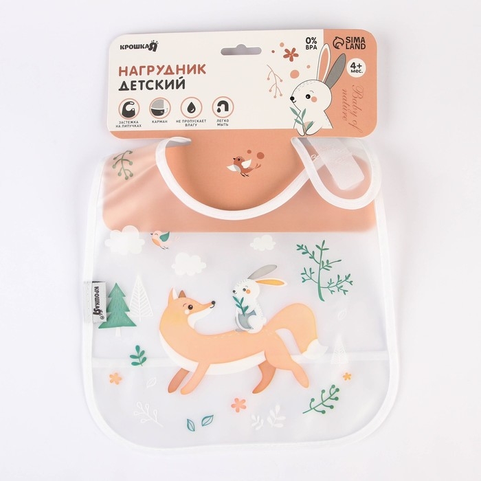 Нагрудник для кормления «Baby of nature» непромокаемый на липучке, с карманом