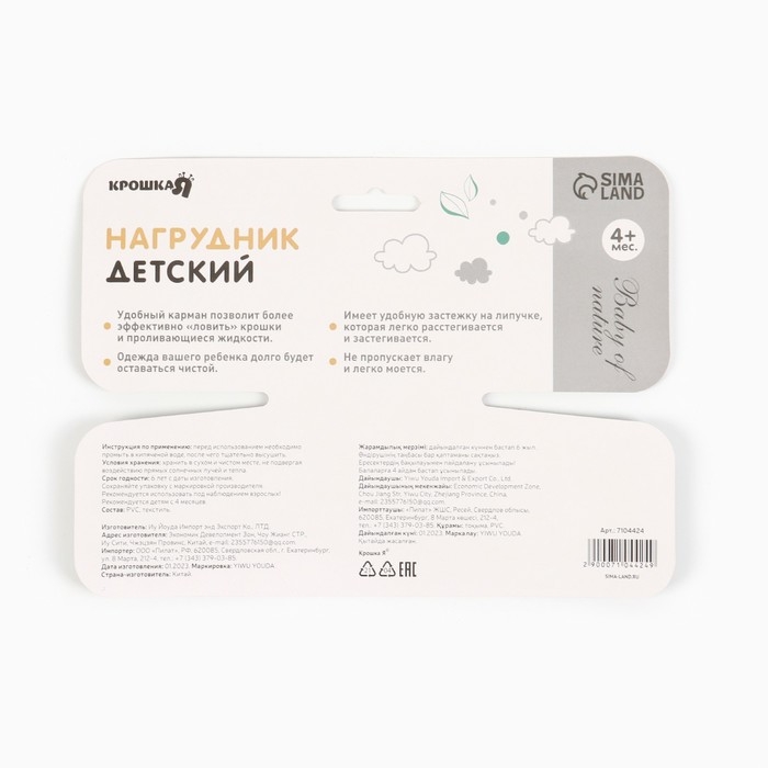 Нагрудник непромокаемый «Лесная сказка», на липучке, с карманом