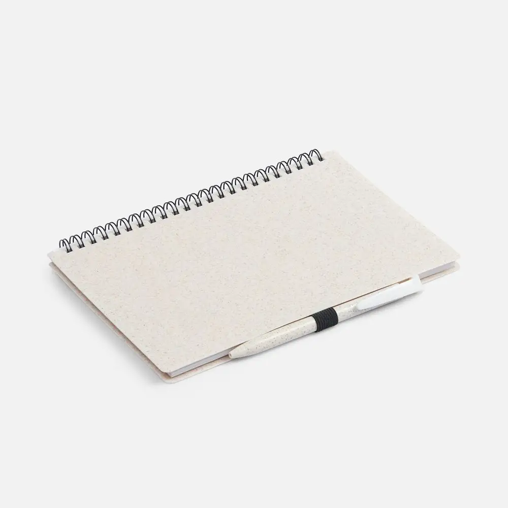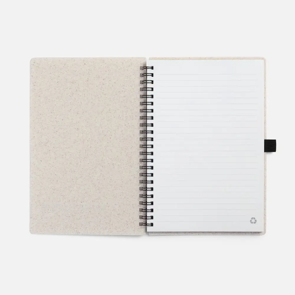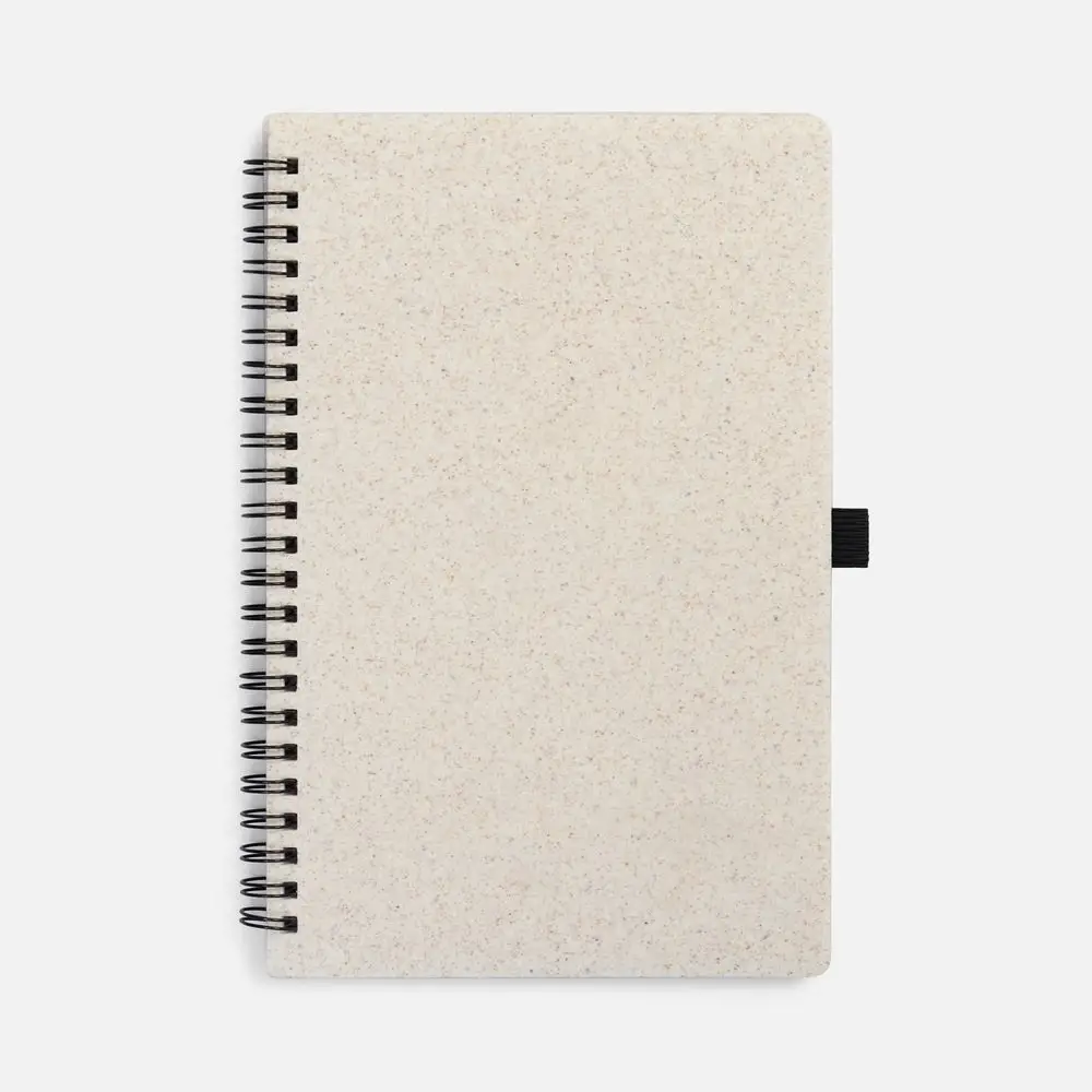 Блокнот на спирали из пшеничной соломы с резинкой для ручки.